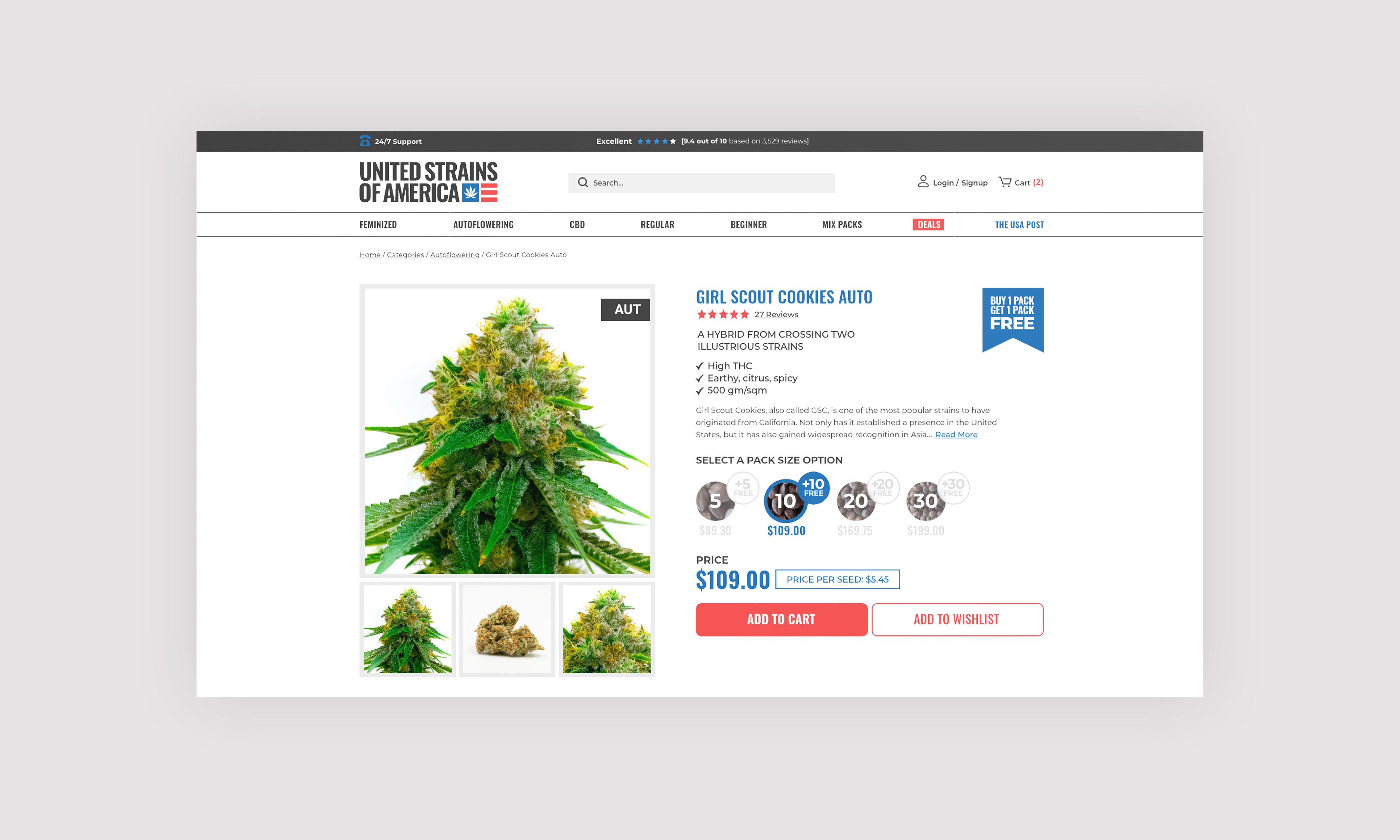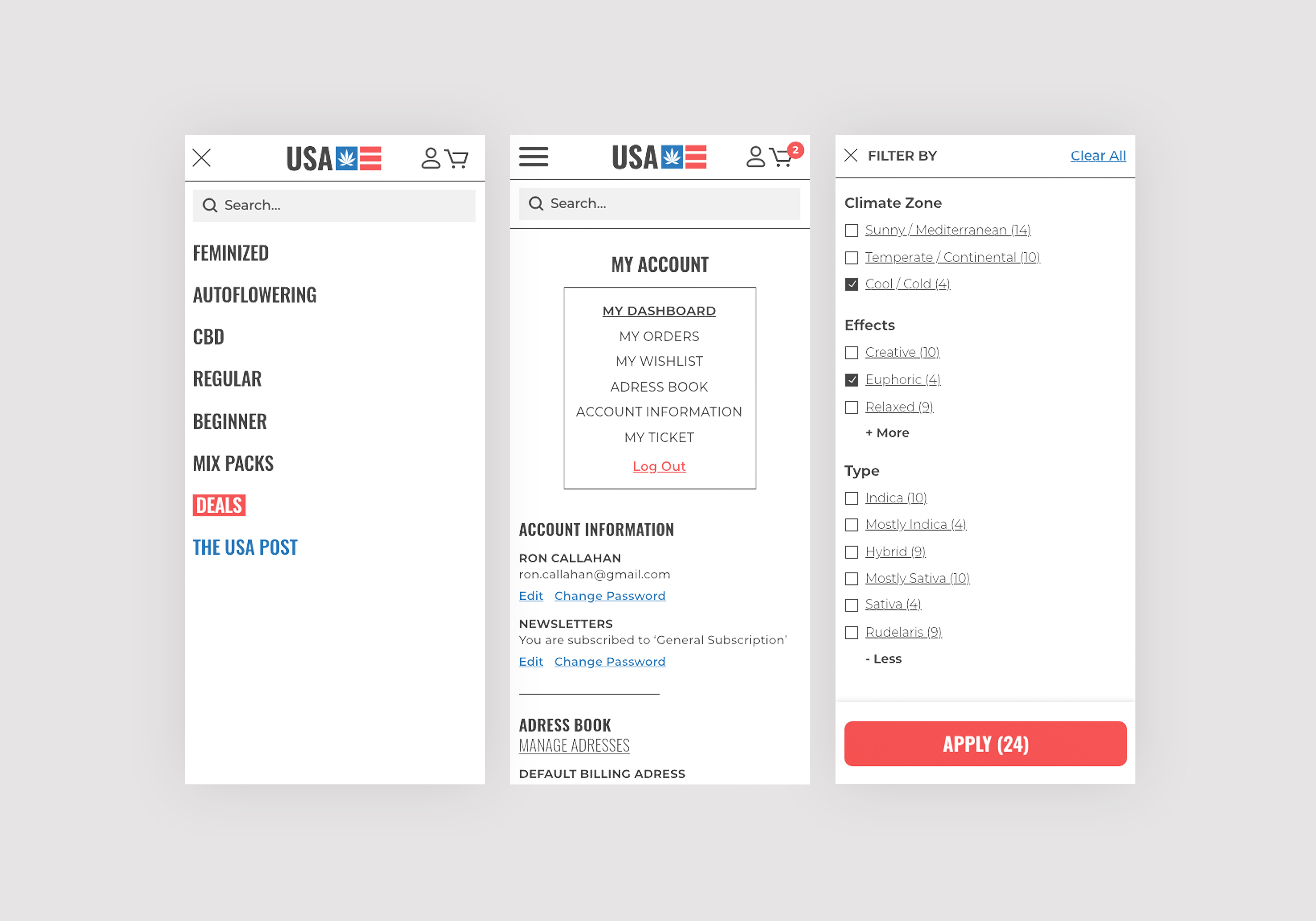 Brand identity and website design for a cannabis seed company. The business strategy is selling a 100% american product: seeds born and evolved for years in the United States, a leading country in the market.